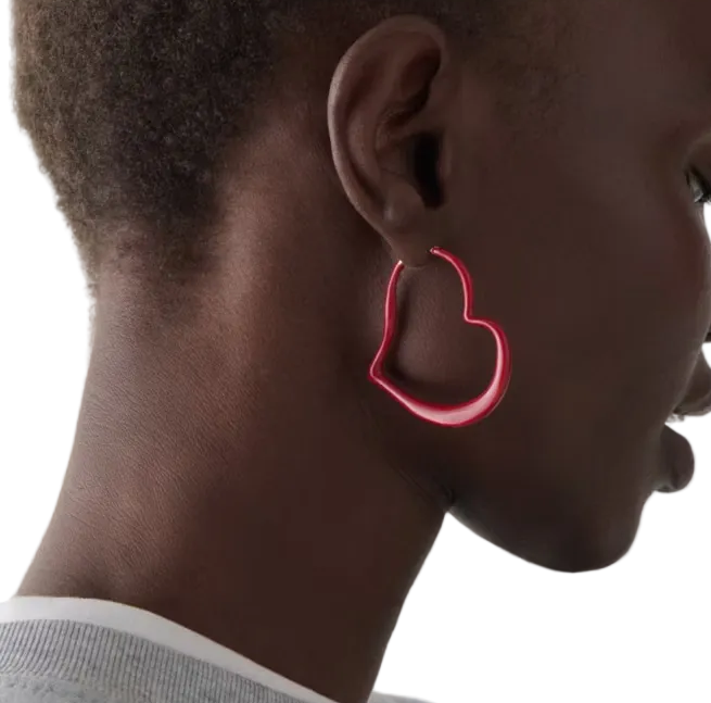 Refresh your collection of hoops with these high-polish huggies reimagined as playfully curved hearts.