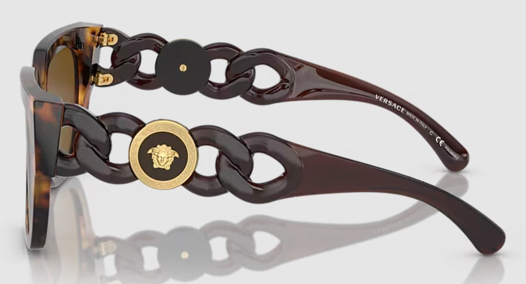 Elevating the iconic square shape to new heights, the Versace VE4409 sunglasses boast a polished havana frame crafted from high-quality acetate. The solid dark brown polarized lenses provide optimal protection from harmful UV rays while adding an extra touch of style to this exquisite design. Embrace timeless elegance with these square-framed shades that seamlessly blend fashion-forward appeal and functionality.