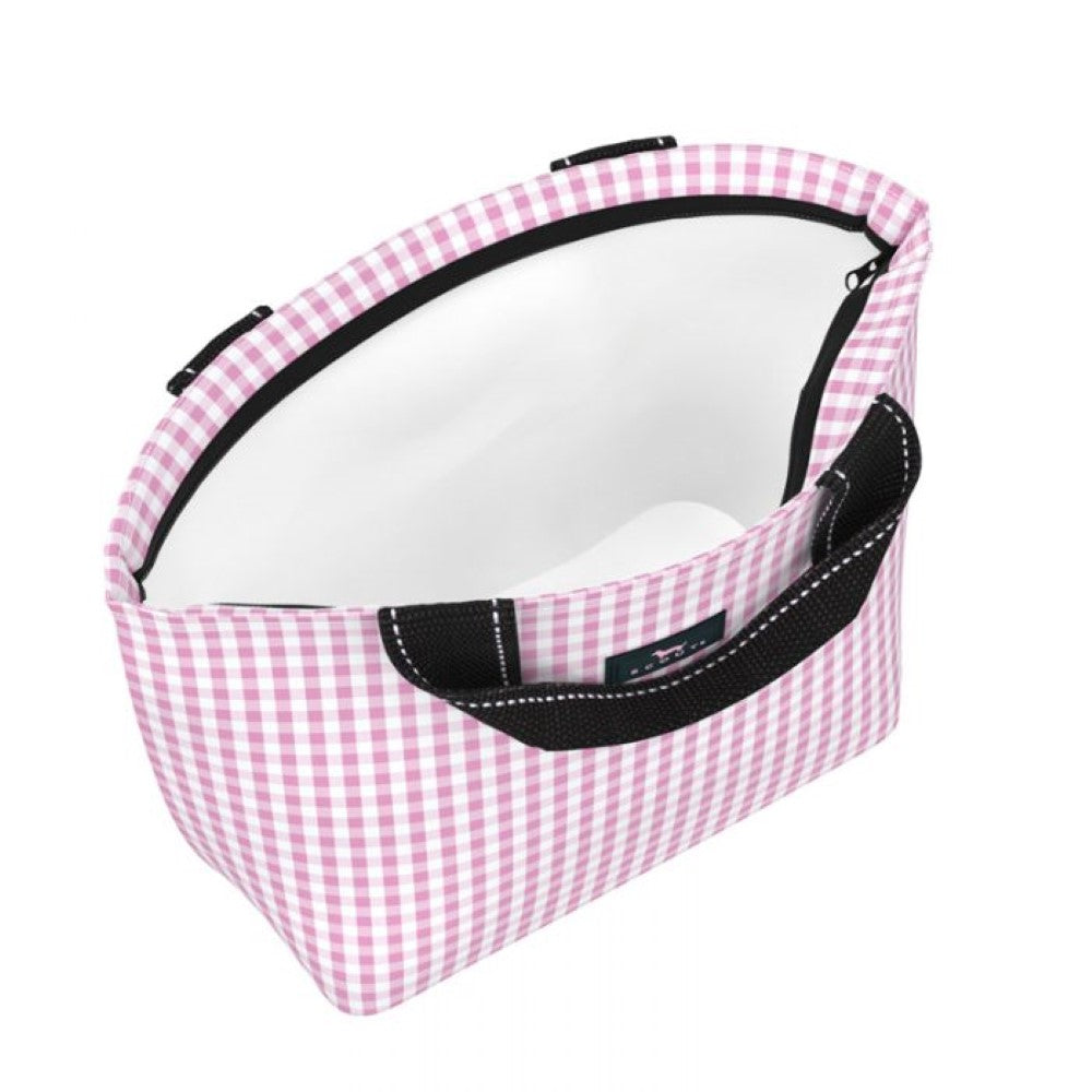 Your new lunch date is compact, lightweight, and wide at the bottom for easy loading. This best-selling, insulated lunch box has top handles for easy carrying, fits nicely inside most SCOUT totes, and zips shut. The outside pocket is perfect for packing napkins and utensils, energy bars, or other treats.