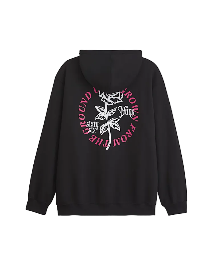The Grown From The Ground Up Pullover Hoodie offers an effortless, pullover design with a soft brushed interior for comfort and warmth. Screen print artwork features long-lasting design of a scripted Vans logo atop a rose on the front. It's the perfect piece for layering in style.
