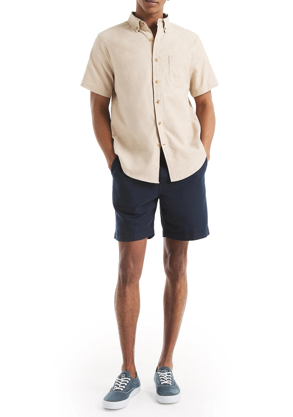 Made of soft jaspe dobby cotton, this shirt has a stay-in-place button-down collar and Nautica's brand icon at the patch pocket for signature style.