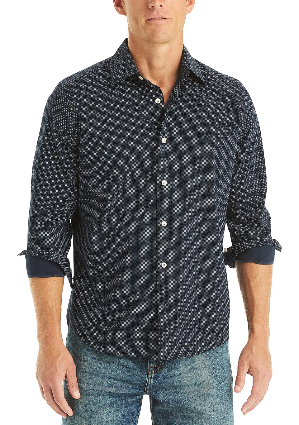 This classic and versatile Nautica shirt features a subtle print for all-day comfort and wear.