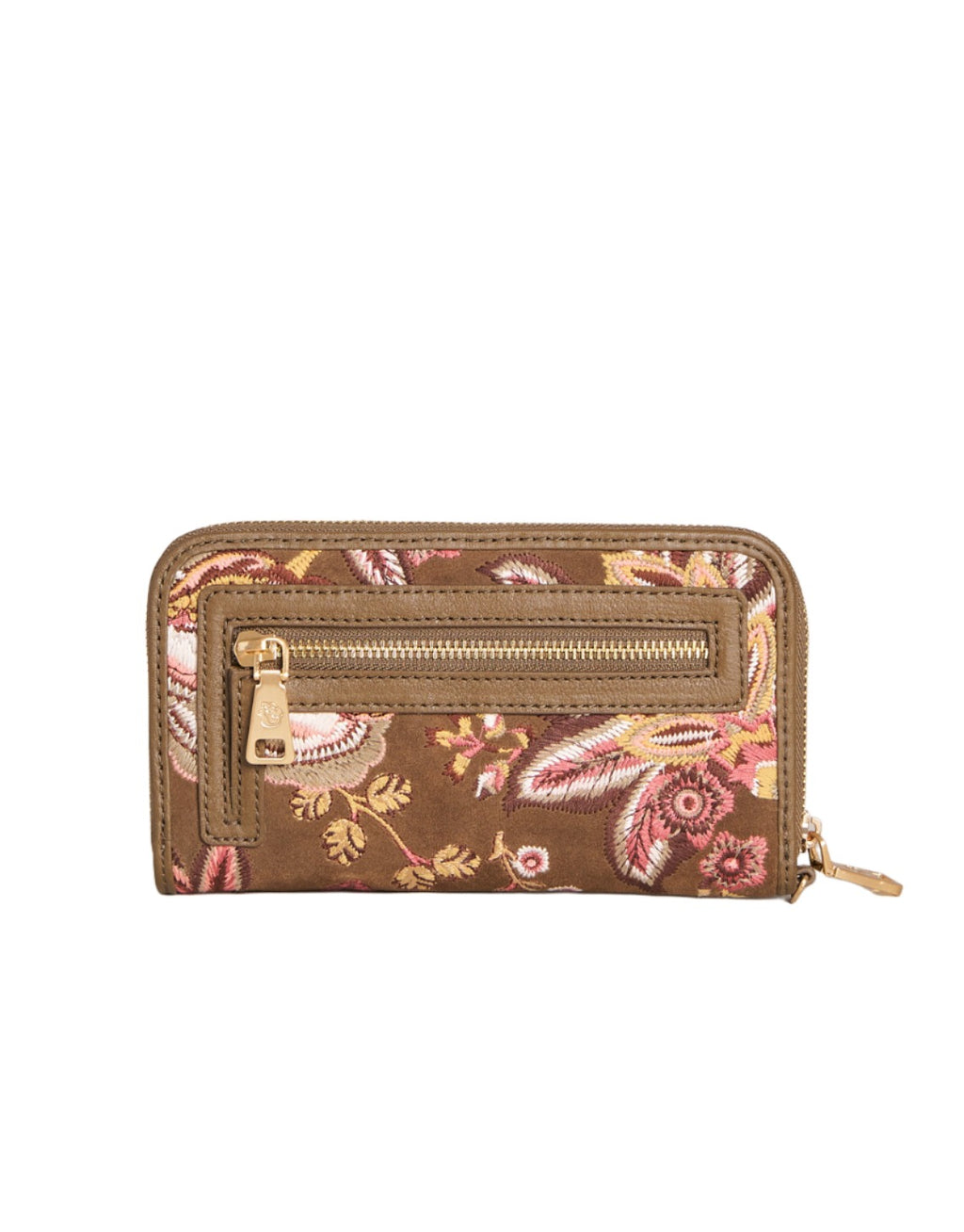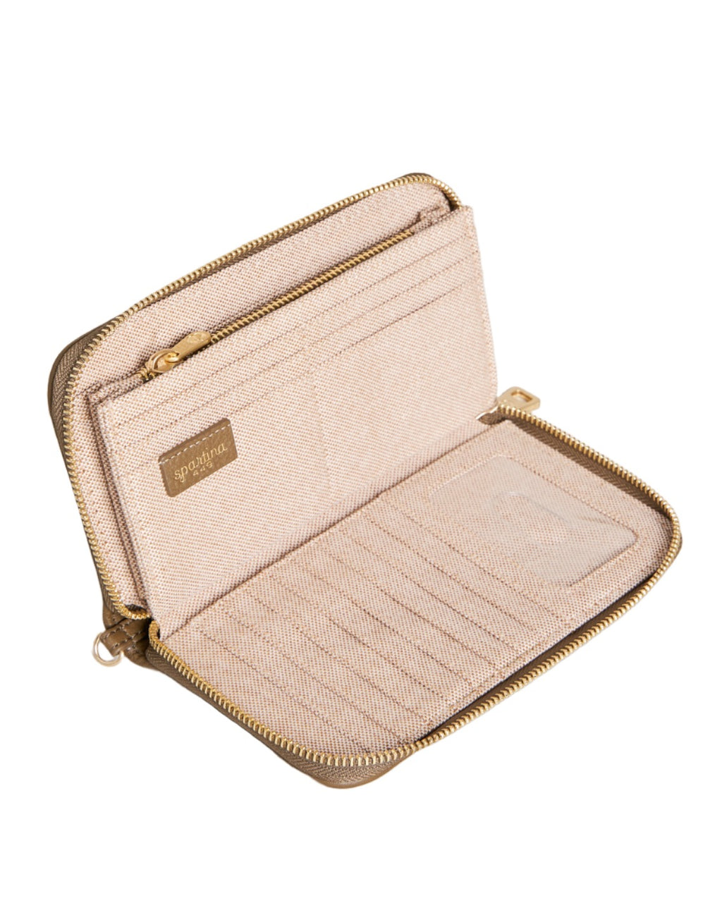 Many of the most favorite features from our most favorite wallets are all in our premium top grain leather and suede Siren 449 Wallet! Full-zip security, wallet or wristlet functionality, loads of card slots and room for your phone. Outside you'll find a custom Spartina mermaid stud and bonus back side zipper coin pocket.