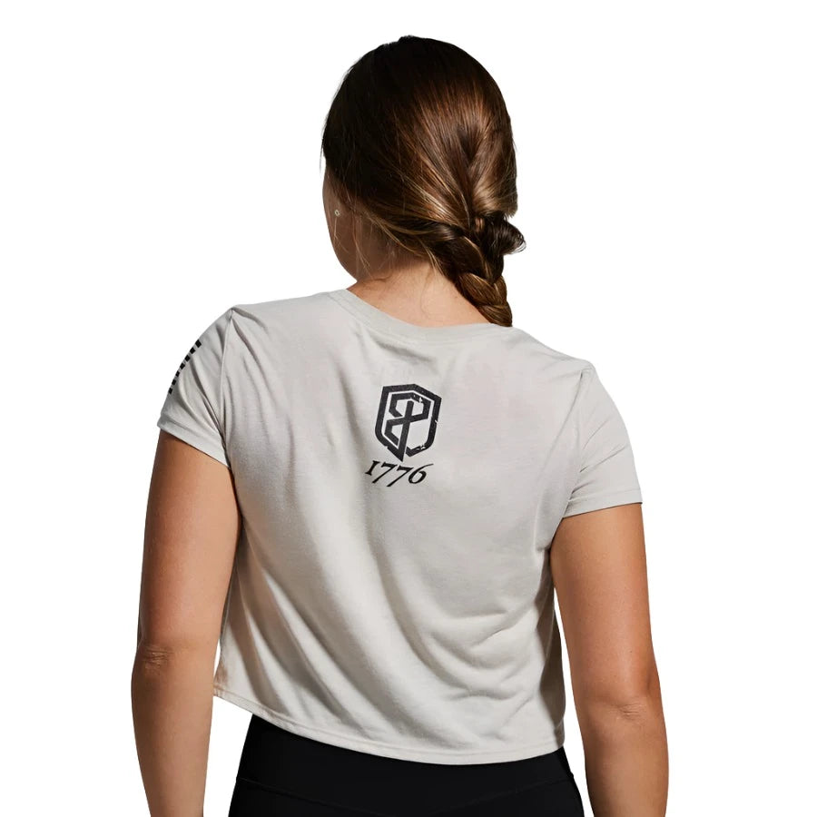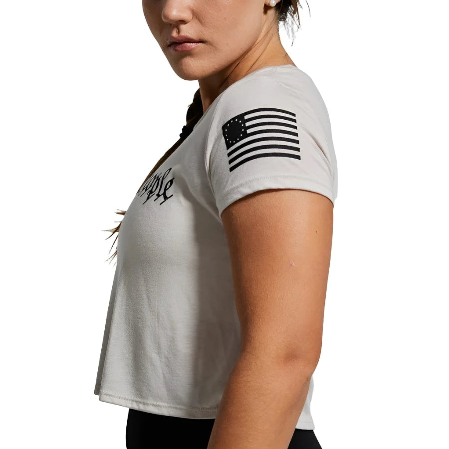 As a veteran-owned company, Born Primitive proudly reps their support for our country and what it stands for. With a nod to the American spirit, this ultra soft crop tee features the opening words and the font of the Preamble to the U.S. Constitution. The back features the BP logo and 1776 in the U.S. Declaration font along with a Betsy Ross flag on the arm—so you can proudly wear your support for this great nation on your sleeve.