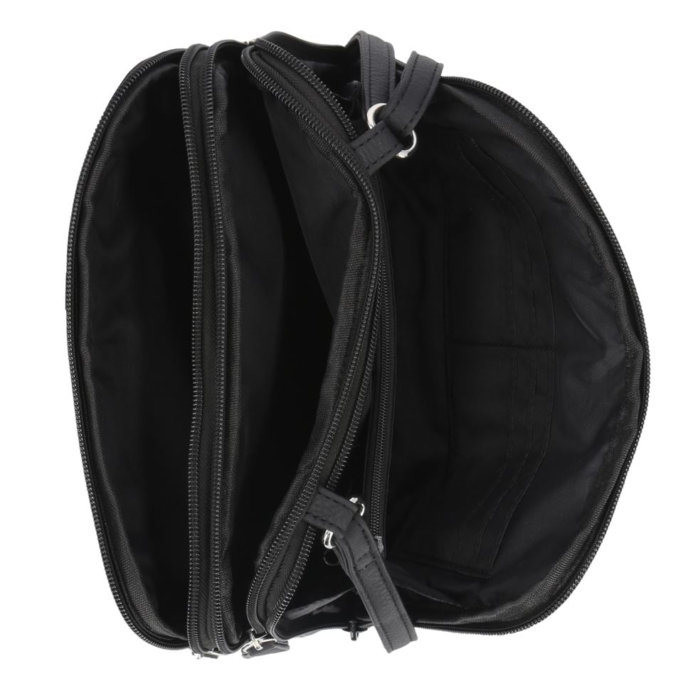 Zip around town in swanky style with this triple compartment crossbody bag. Use its 3 split compartments, interior card slots, and affixed pockets in the front to efficiently organize your life.