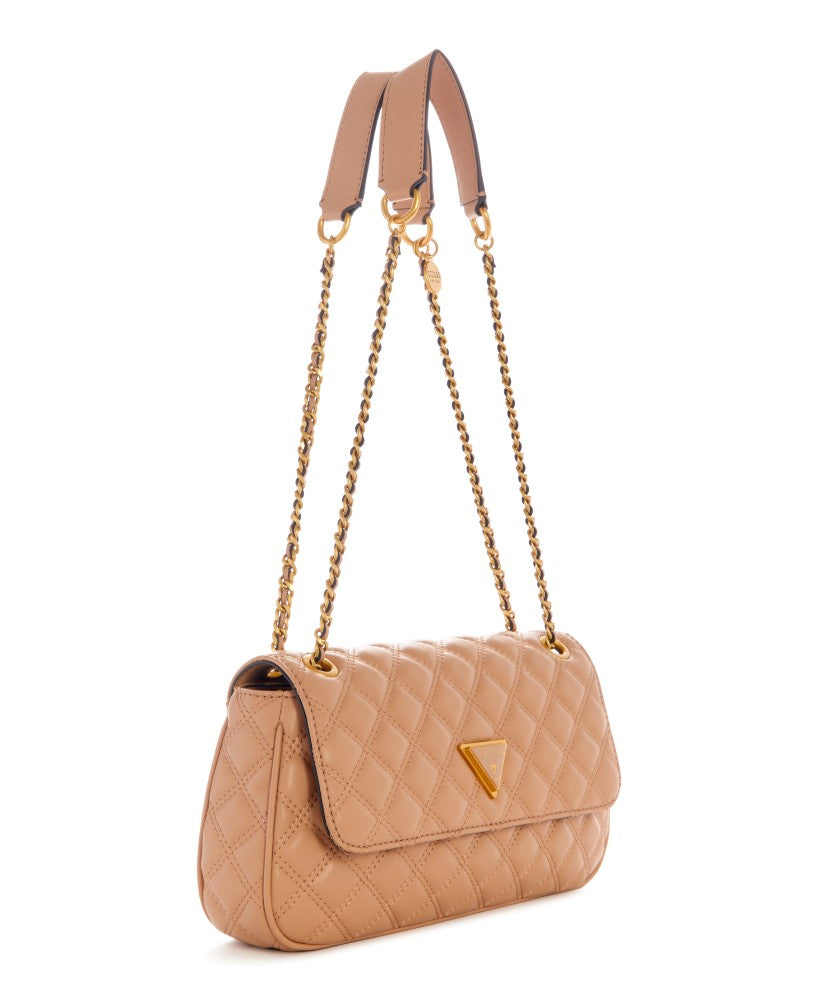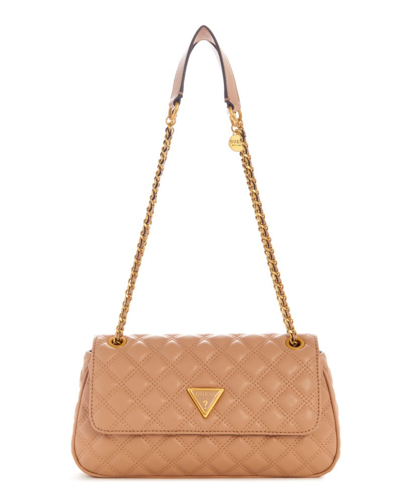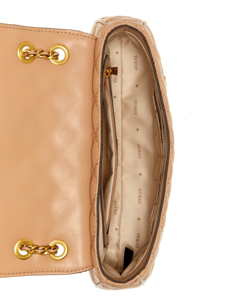 Constructed in a quilted faux-leather design, this must-have crossbody features a fold-over flap with logo seal and top rivet accents to allow the chain strap to convert to a shoulder bag.