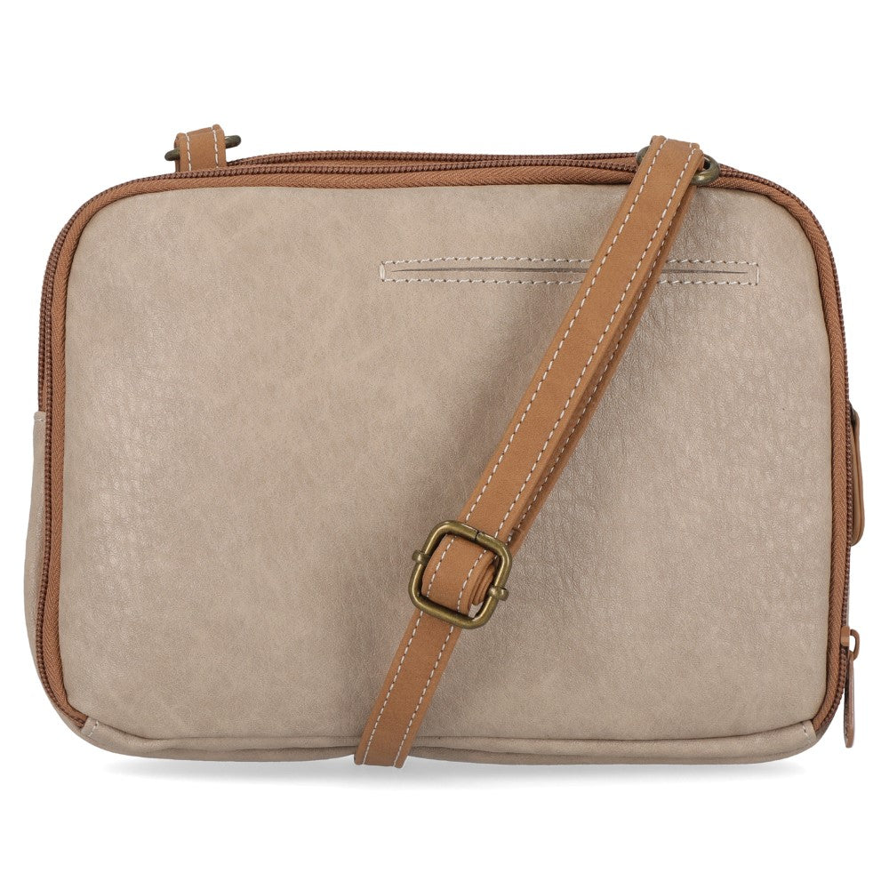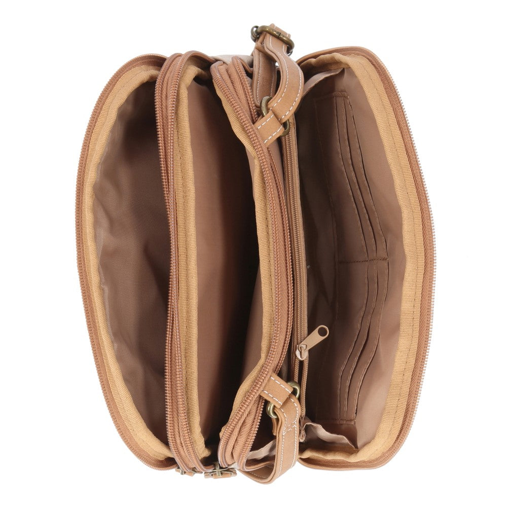 Zip around town in swanky style with this triple compartment crossbody bag. Use its 3 split compartments, interior card slots, and affixed pockets in the front to efficiently organize your life.