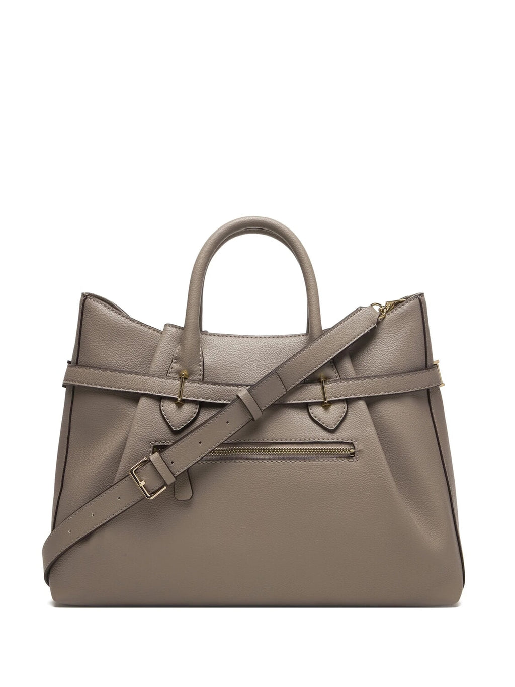 Product Details:Faux leather handbag.Saffiano pattern.Internal back and zip pocket.Gold Hardware.Logo on front.Zip closure.