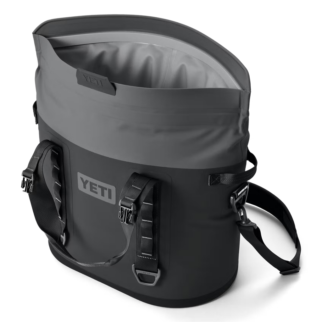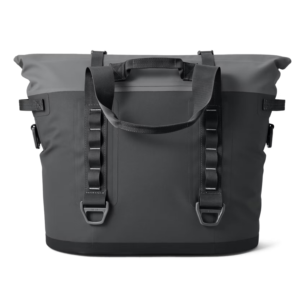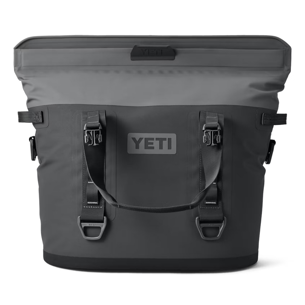 The Hopper M30 Soft Cooler is YETI's tough-as-nails soft cooler that can carry 42 cans of your favorite beverage. Their signature wide-mouth opening has been reengineered to stay open with ease and close tight with a gentle push. A strip of ultra-strong magnets locks in cold while Quick-Release Buckles provide extra security through choppy water or when riding through rough terrain in the bed of a truck.